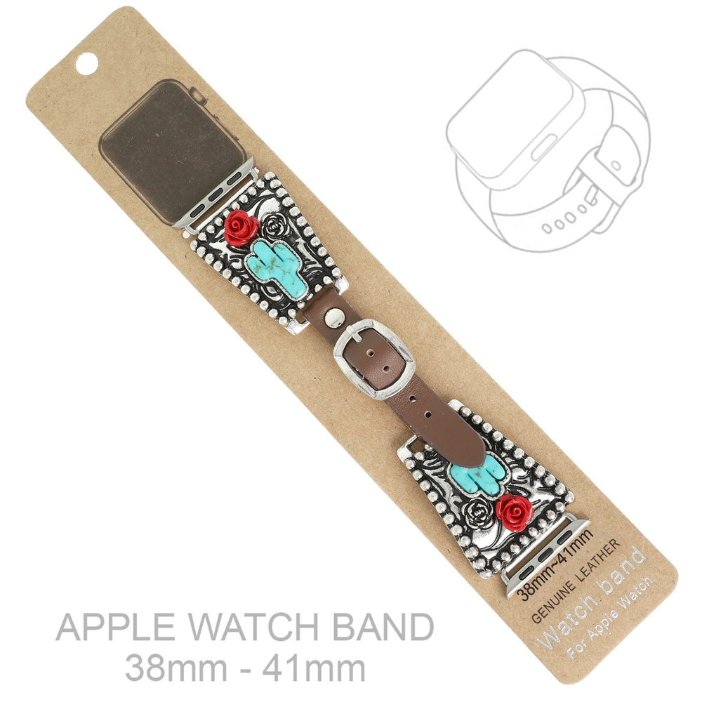 WESTERN FLORAL CACTUS TURQUOISE APPLE WATCH LEATHER BAND