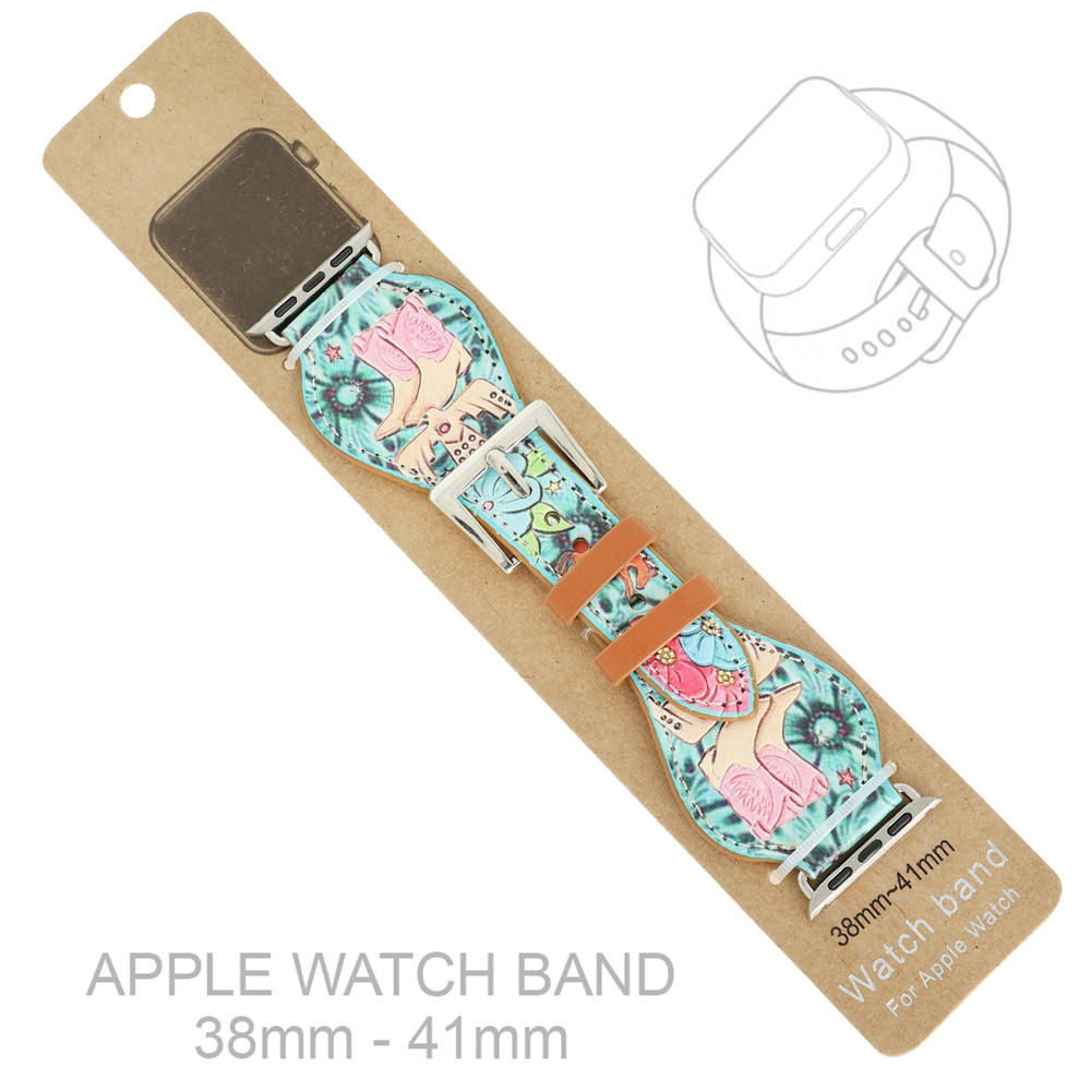 FLORAL COWBOY BOOTS TOOLED LEATHER APPLE WATCH BAND WITH PIN BUCKLE CLOSURE
