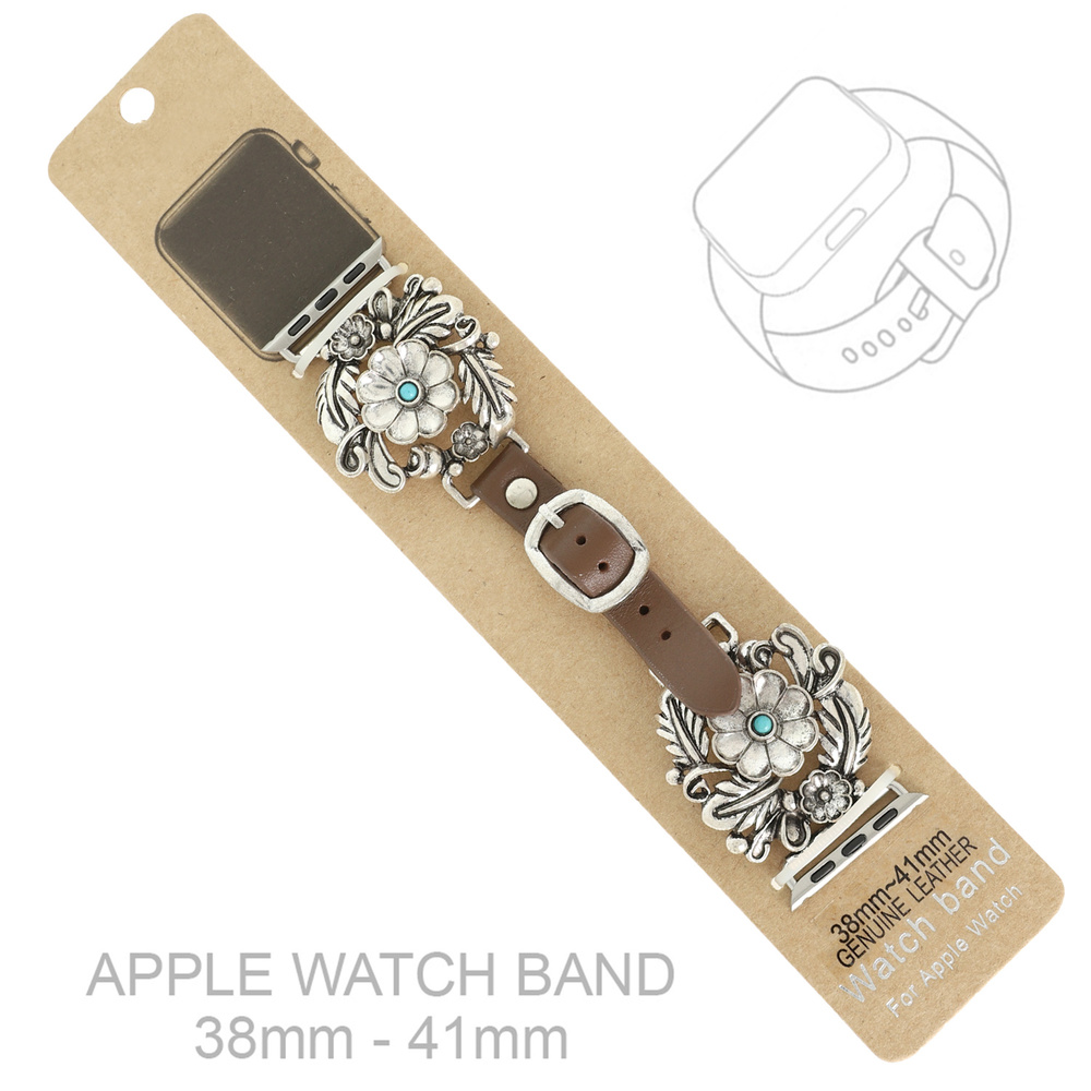 FLORAL TURQUOISE CONCHO LEATHER APPLE WATCH BAND WITH PIN BUCKLE CLOSURE