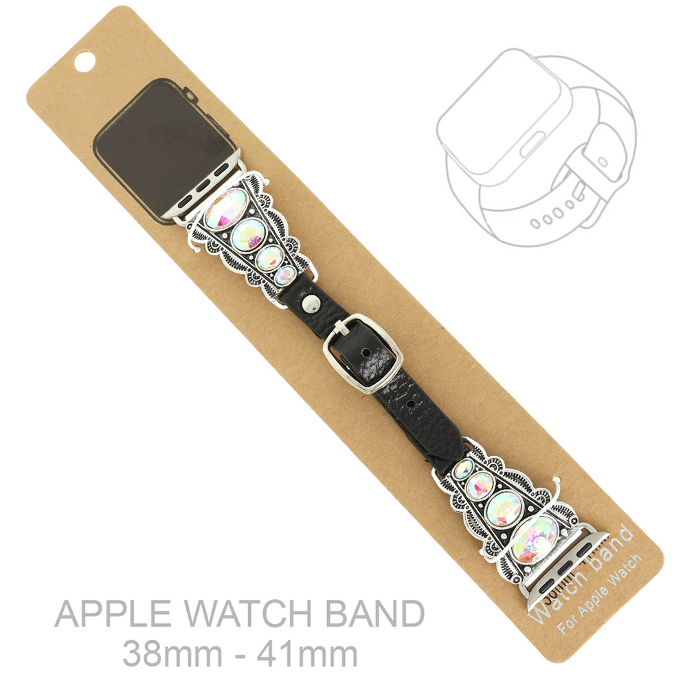 CRYSTAL TRAPEZOID CONCHO APPLE WATCH LEATHER BAND WITH PIN BUCKLE CLOSURE