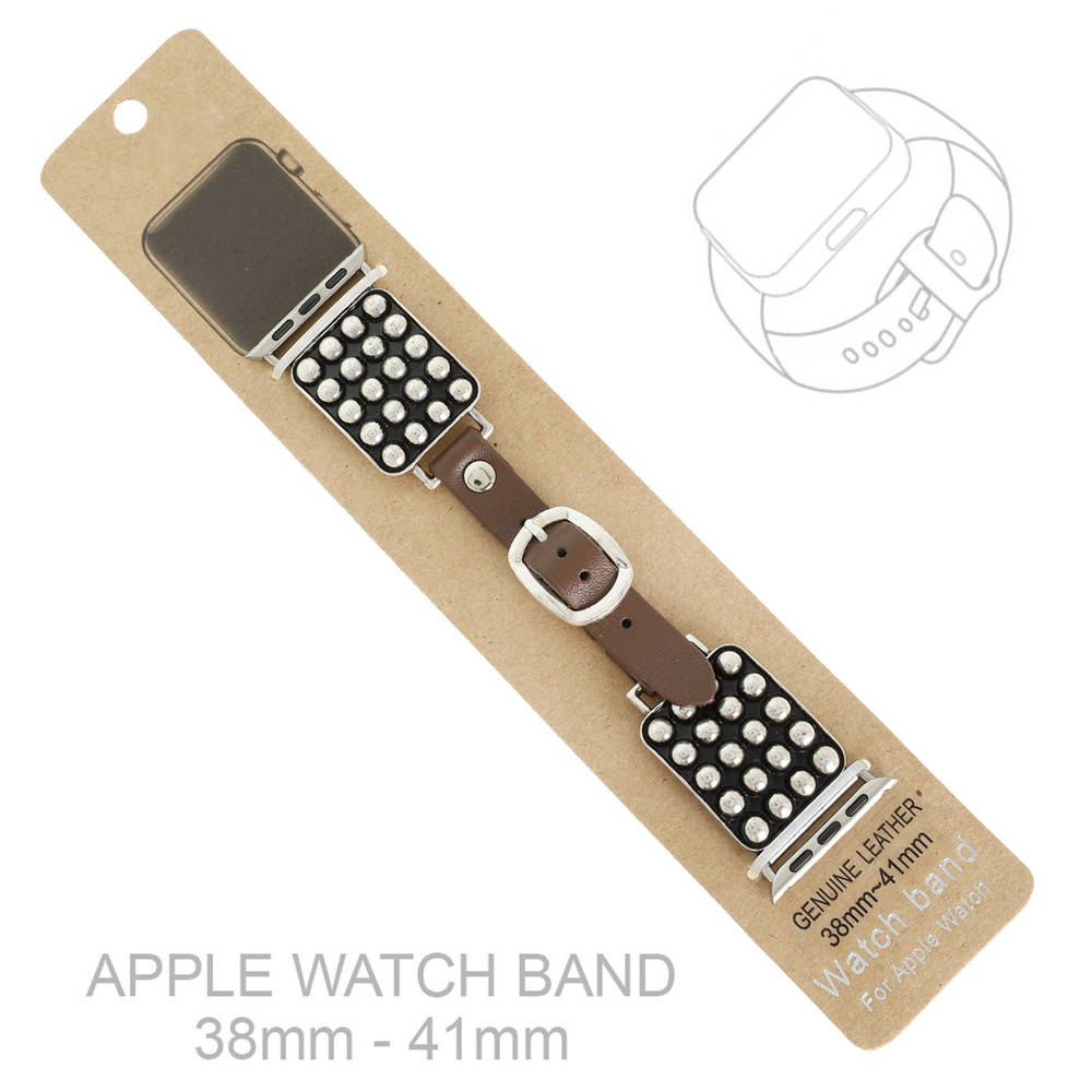 WESTERN BUBBLE SQUARE CONCHO APPLE WATCH LEATHER BAND WITH PIN BUCKLE CLOSURE