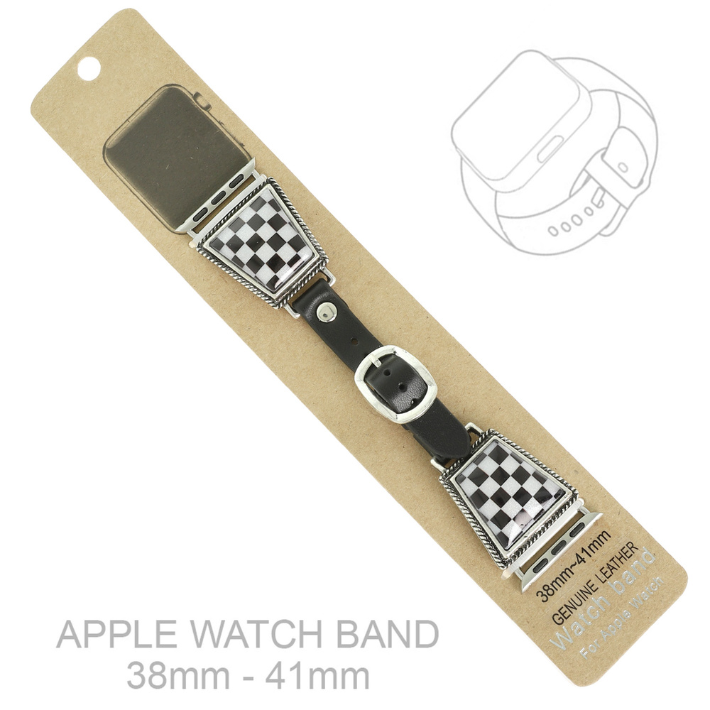 WESTERN CHECKER FLAG PATTERN TRAPEZOID CONCHO APPLE WATCH LEATHER BAND