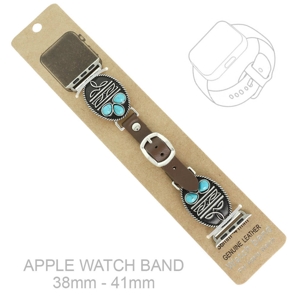 TURQUOISE EMBELLISHED BOOT STITCH CONCHO APPLE WATCH LEATHER BAND