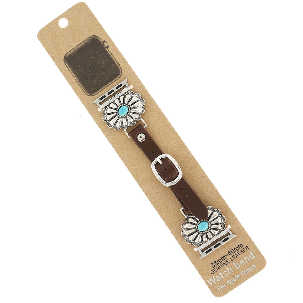 CONCHO -TURQUOISE SEMI-STONE WESTERN THEMED GENUINE LEATHER APPLE WATCH STRAP
