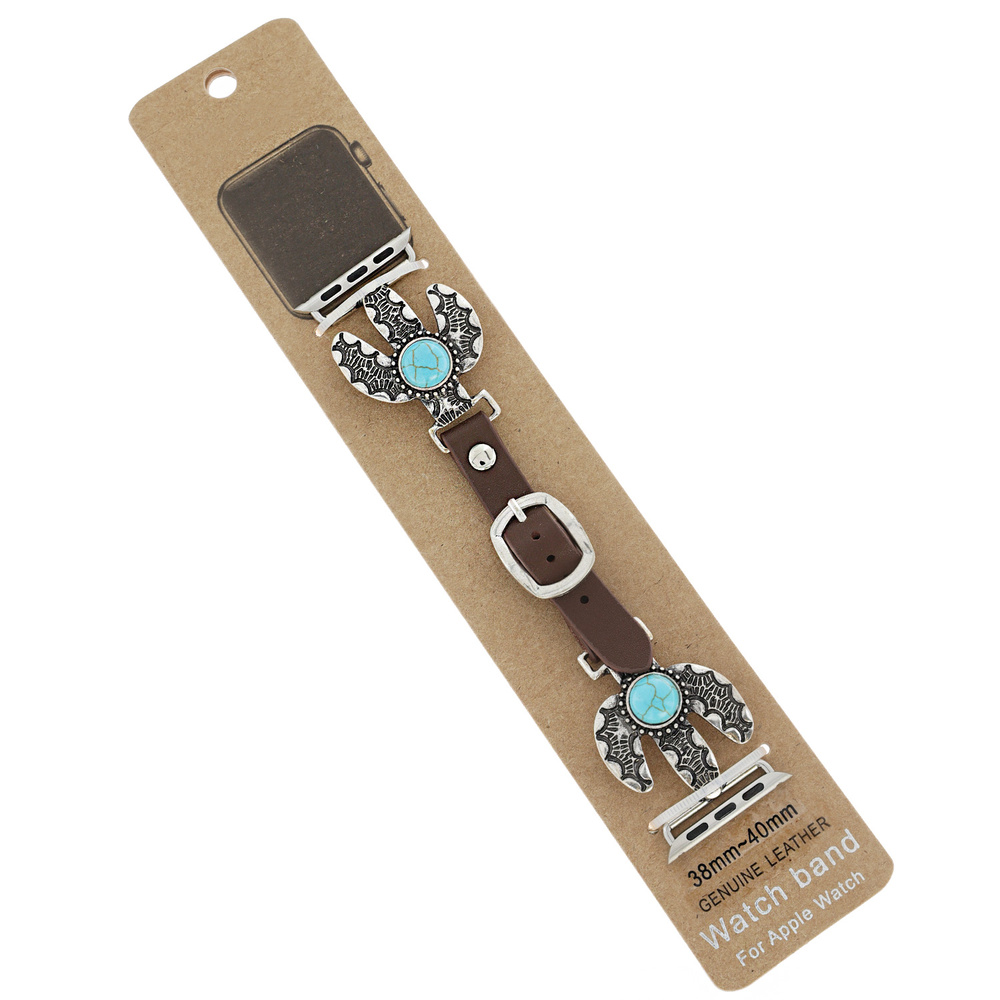 CACTUS - WESTERN TURQUOISE SYNTHETIC SEMI STONE GENUINE LEATHER APPLE WATCH BUCKLE STRAP