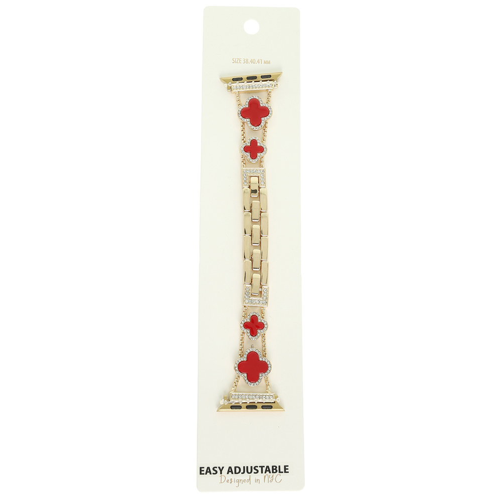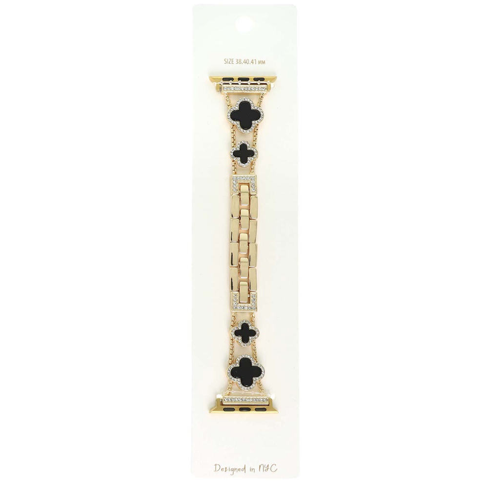 PEARLESCENT QUATREFOIL RHINESTONE PAVE APPLE WATCH BRACELET BAND