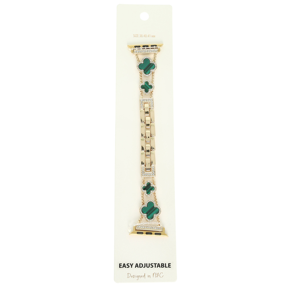 PEARLESCENT QUATREFOIL RHINESTONE PAVE APPLE WATCH BRACELET BAND