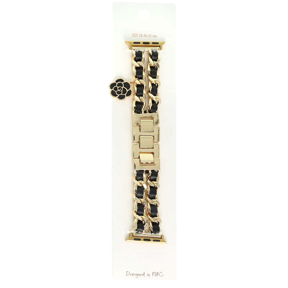 FLORAL ENAMEL COATED CHARM FAUX LEATHER WOVEN CURB LINK CHAIN APPLE WATCH BAND