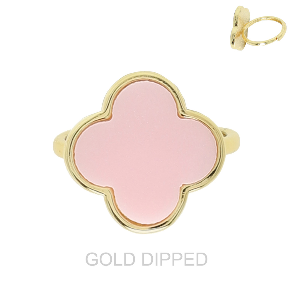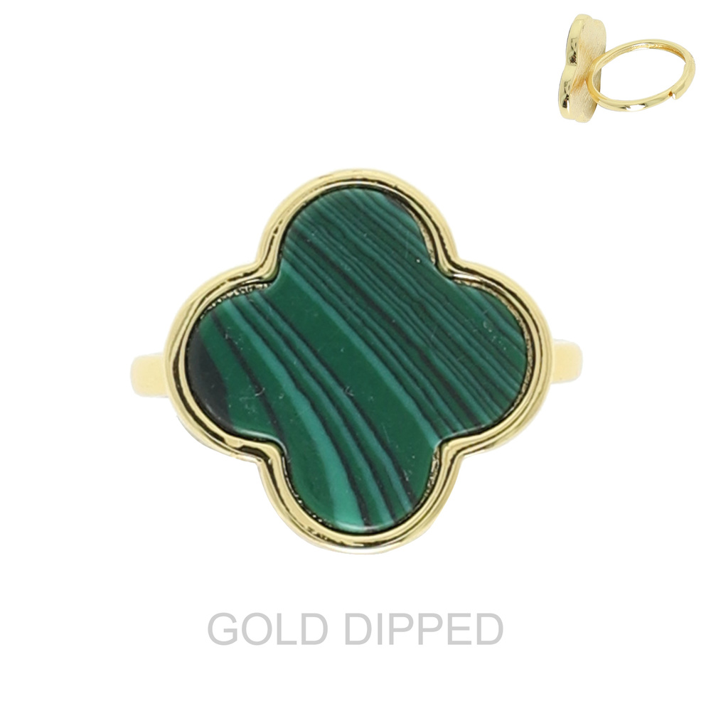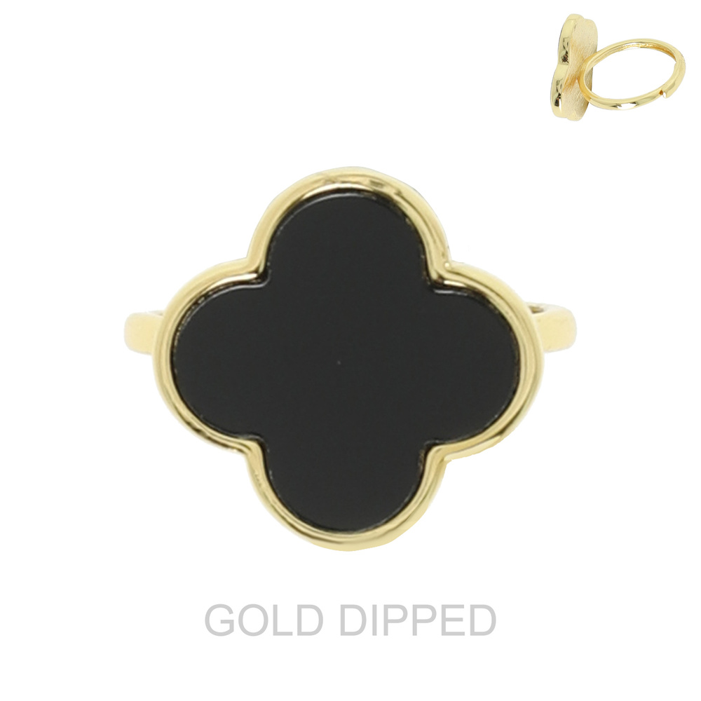 GOOD LUCK FOUR LEAF CLOVER QUATREFOIL ENAMEL GEMSTONE ADJUSTABLE ONE SIZE RING