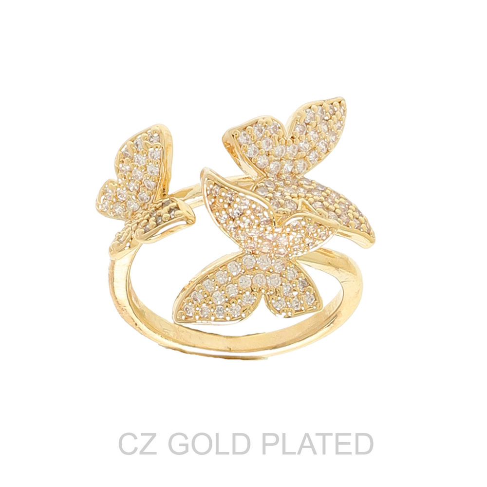 BUTTERFLY CUBIC ZIRCONIA PAVE FREE-SIZE RING IN GOLD PLATING