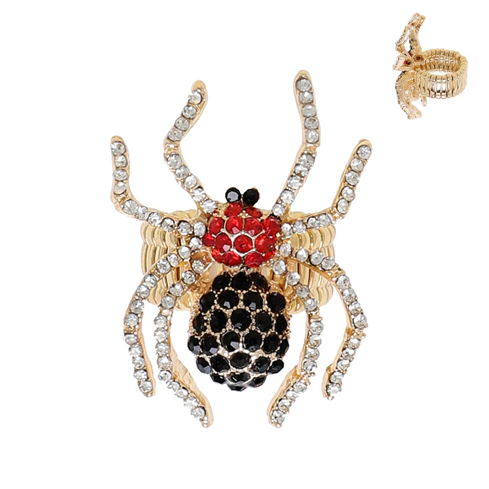 CRYSTAL RHINESTONE SPIDER STRETCH COCKTAIL RING