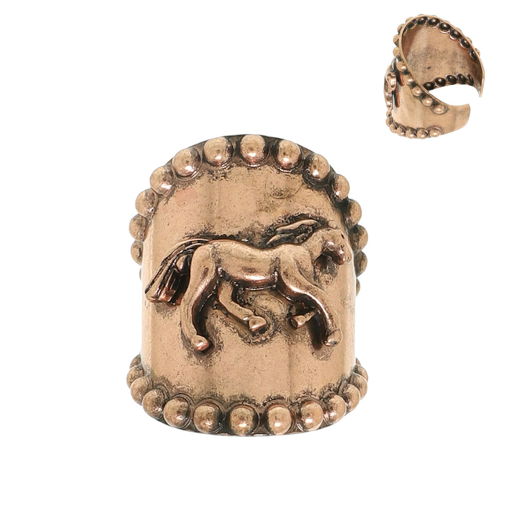 WESTERN RAISED HORSE EMBLEM WIDE CUFF RING IN OXIDIZED COPPER-TONE AND SILVER TONE METAL