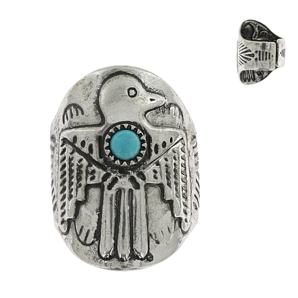 WESTERN NATIVE AMERICAN SYNTHETIC SEMI STONE THUNDERBIRD ADJUSTABLE CUFF RING