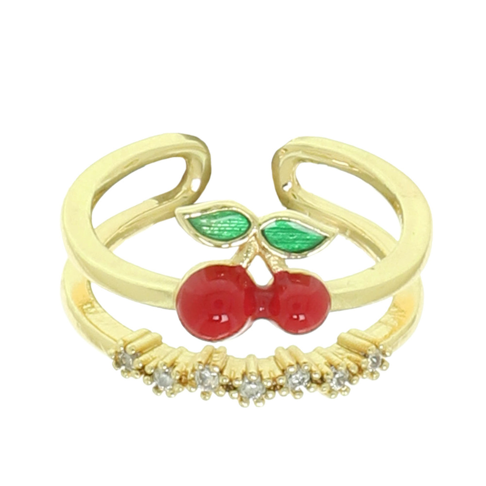 RED AND GREEN ENAMEL PRONG-SET RHINESTONES ADJUSTABLE ONE SIZE CHERRY CUFF RING