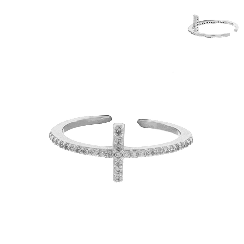 CUBIC ZIRCONIA PAVE SIDEWAYS CROSS OPEN BAND RING