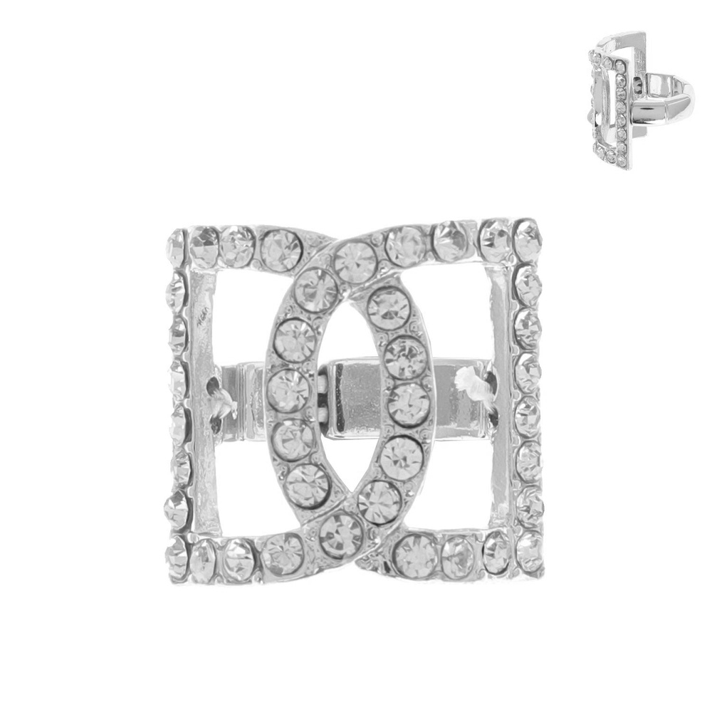 DOUBLE D CRYSTAL RHINESTONE PAVE STRETCH RING IN GOLD TONE METAL