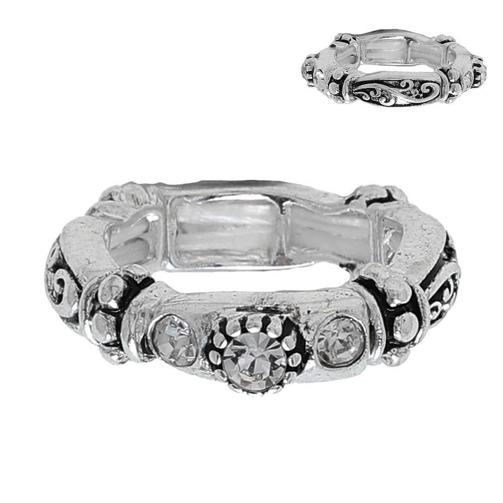 WESTERN CRYSTAL RHINESTONE STRETCH RING IN OXIDIZED SILVER TONE METAL