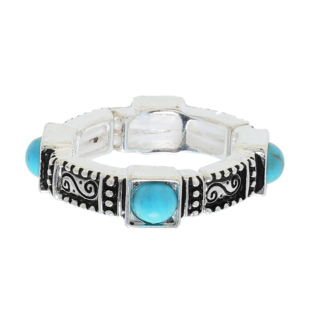 WESTERN 4-STONE TURQUOISE SEMI STONE STRETCH RING IN OXIDIZED SILVER TONE METAL