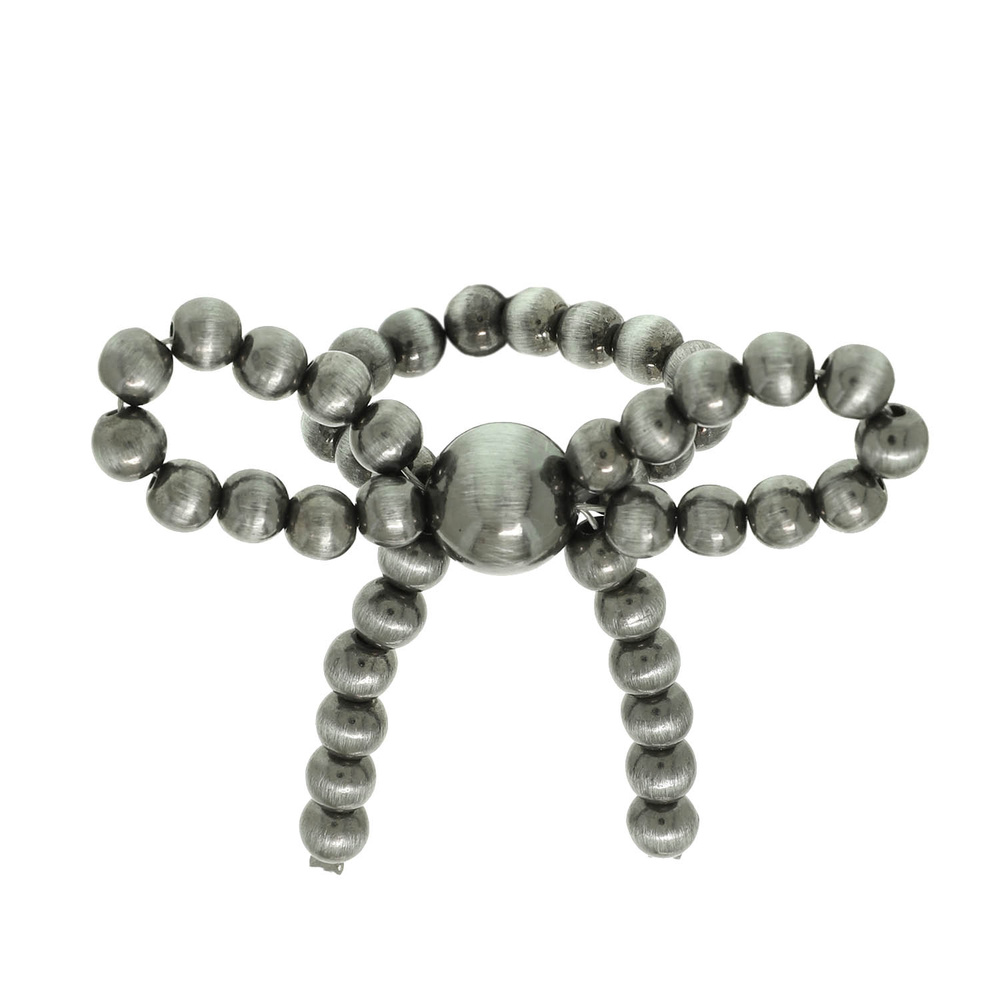 PEARL RIBBON STRETCH RING IN OXIDIZED SILVER TONE METAL