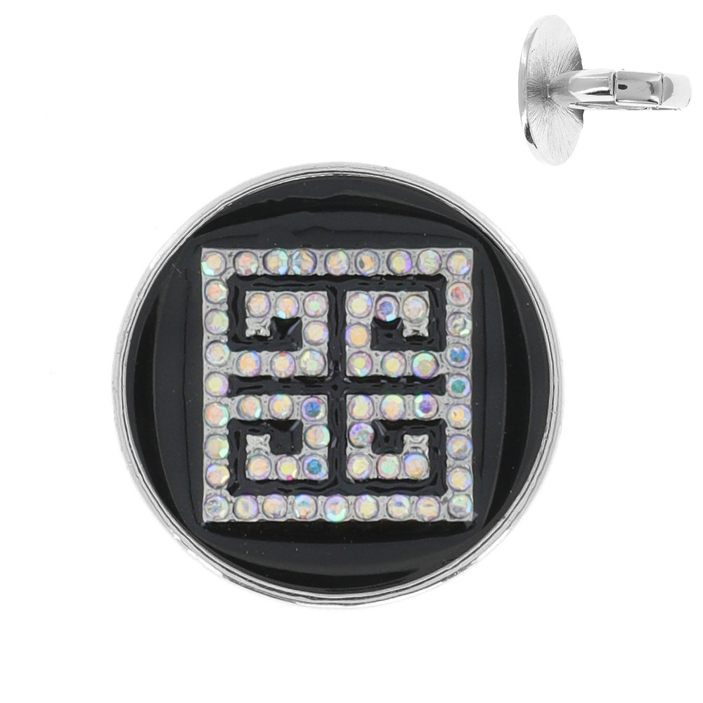 RHINESTONE PAVE ENAMEL GREEK KEY SQUARE STRETCH RING