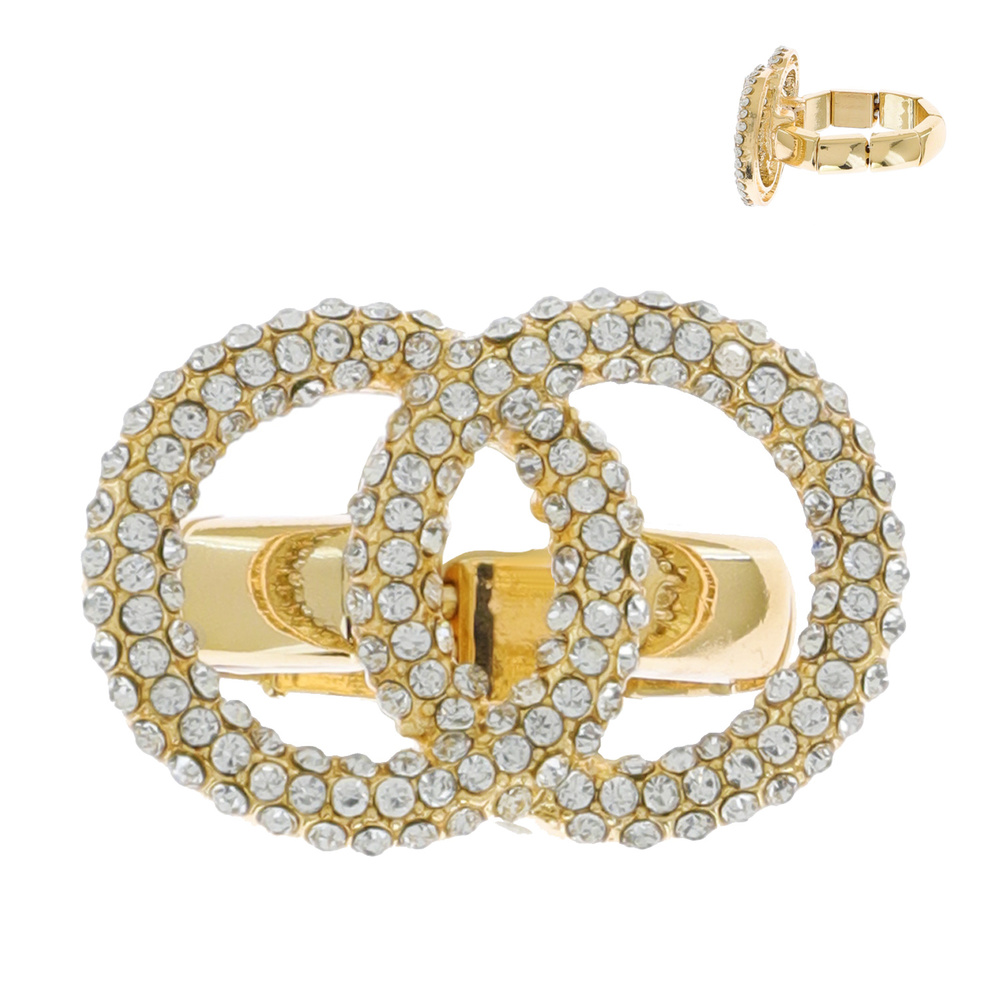 CRYSTAL RHINESTONE PAVE INTERLOCKING CIRCLES INFINITY STRETCH RING