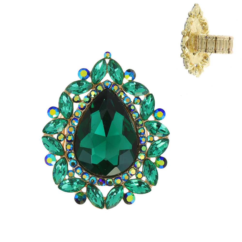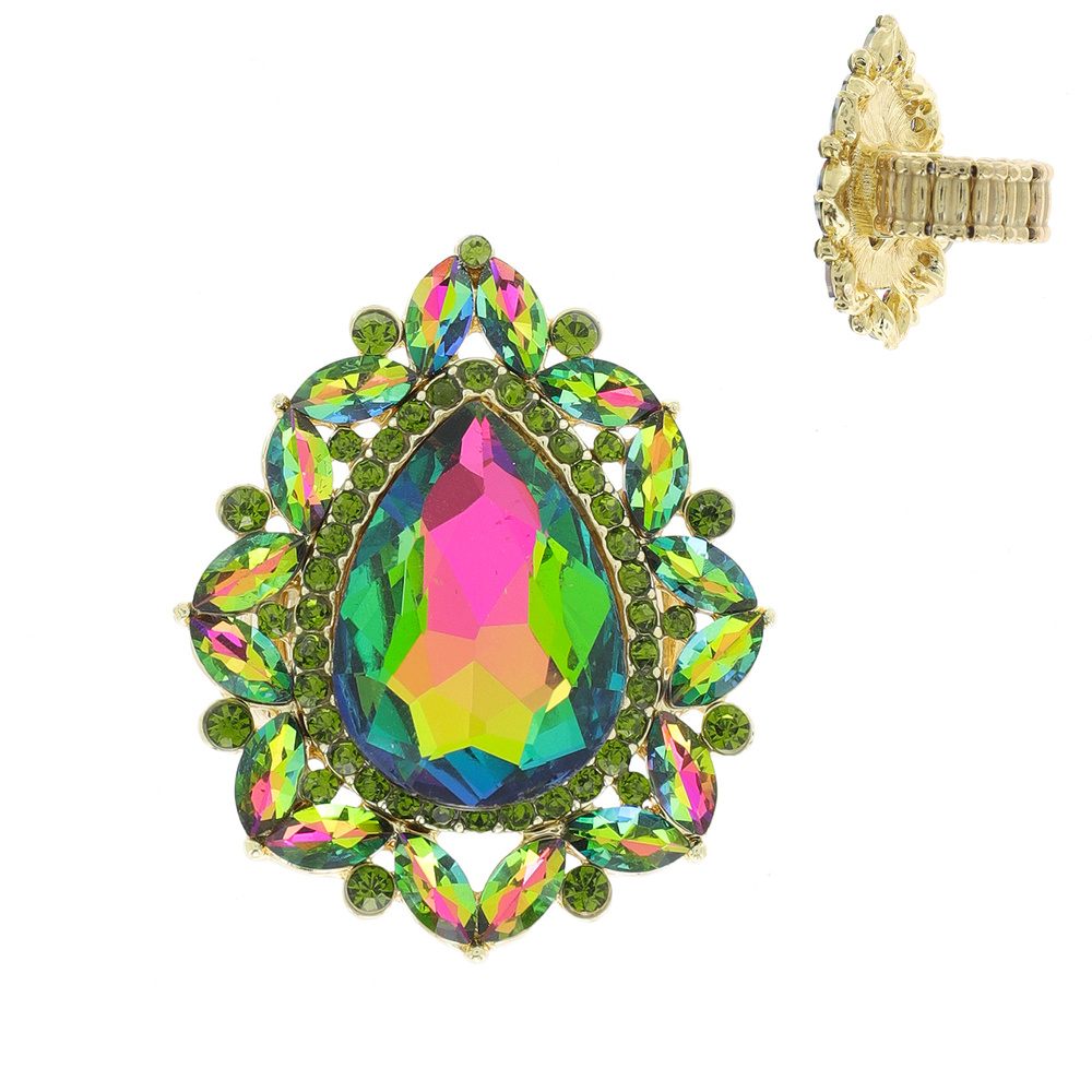 TEARDROP AND MARQUISE CUT CRYSTAL CLUSTER HALO STRETCH RING
