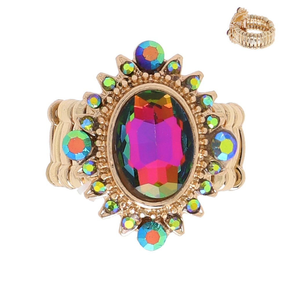 VINTAGE CRYSTAL RHINESTONE SUNBURST HALO STRETCH RING