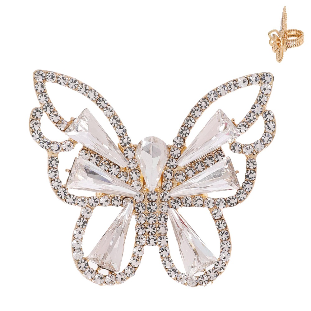 BUTTERFLY CRYSTAL GEMSTONE COCKTAIL STRETCH RING