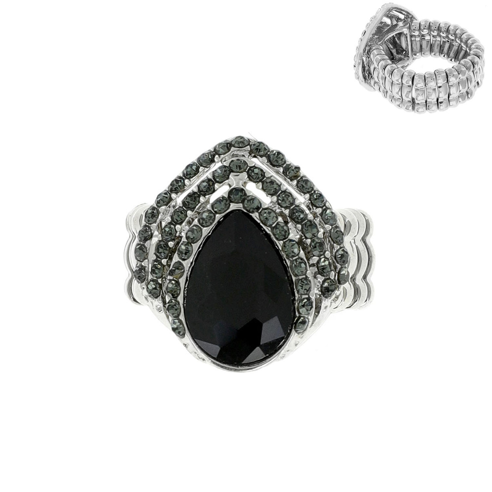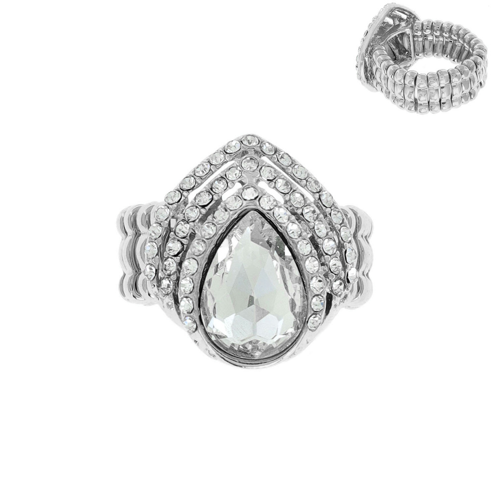 TEARDROP CRYSTAL GEM TIPPLE HALO STRETCH RING -GLAM EVENING COCKTAIL STATEMENT JEWELRY
