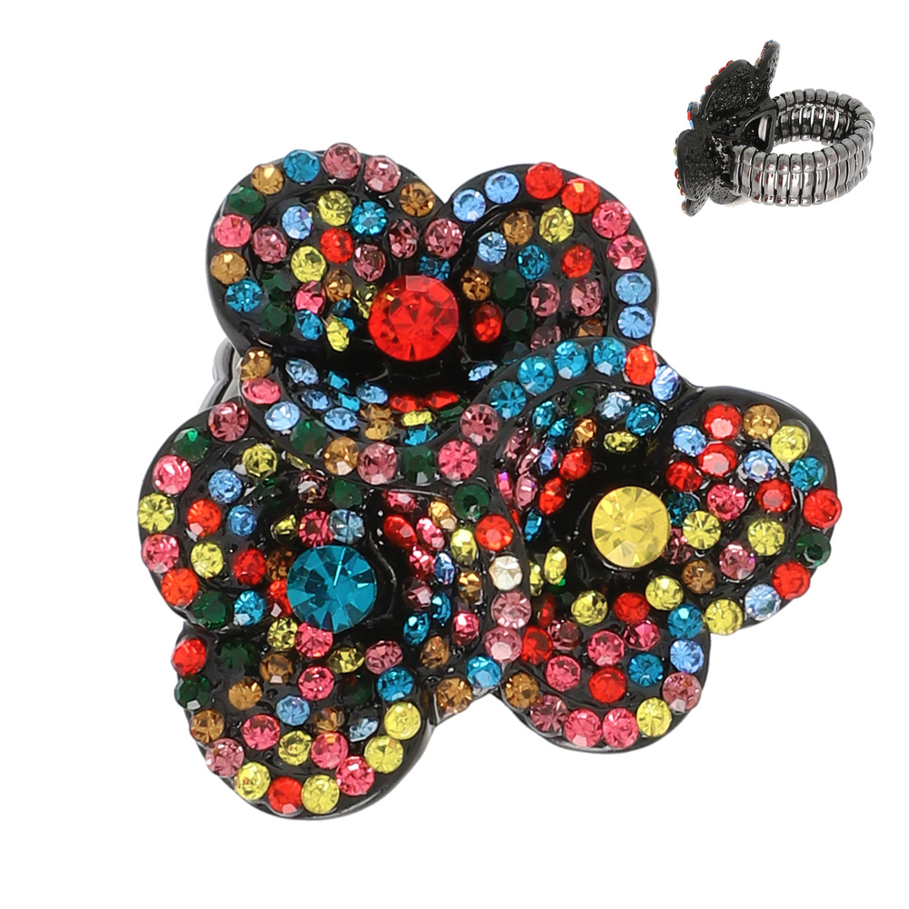 CRYSTAL RHINESTONE FLORAL BOUQUET ADJUSTABLE ONE SIZE STRETCH RING