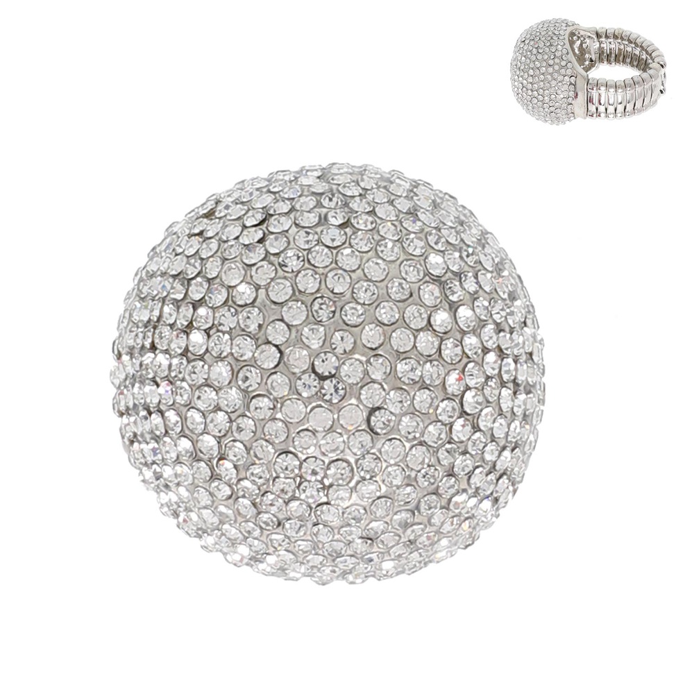CRYSTAL RHINESTONE PAVE DISCO BALL STRETCH RING