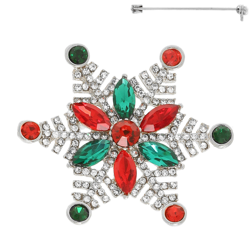 Christmas Crystal Rhinestone Pave Snowflake Brooch Pin