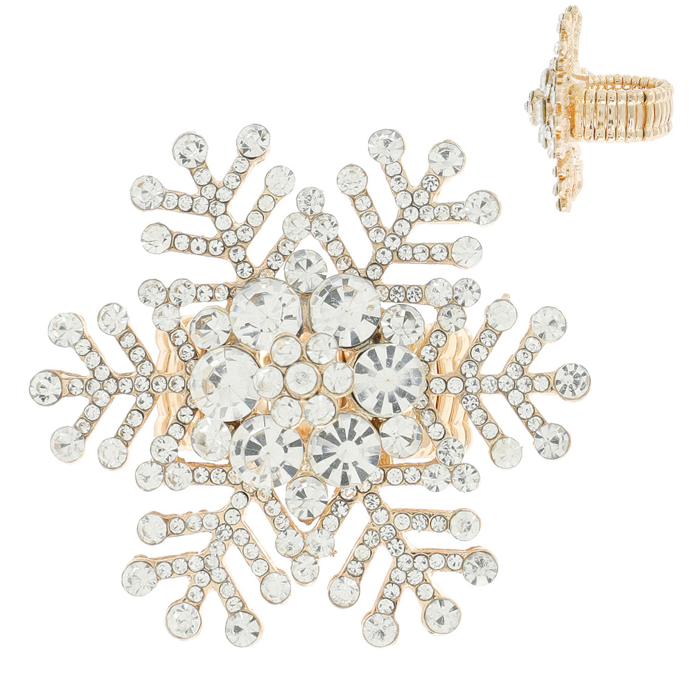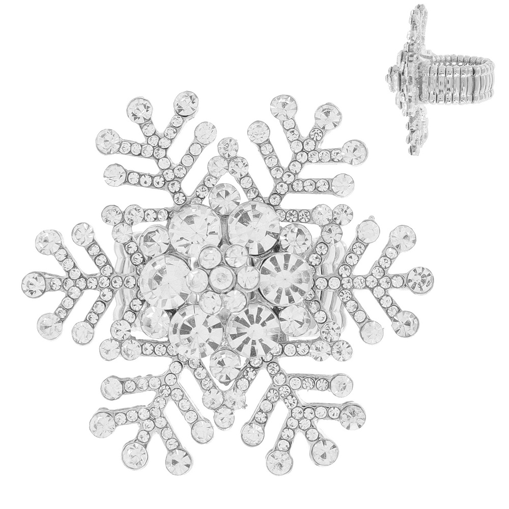 Christmas Crystal Rhinestone Pave Snowflake Stretch Ring