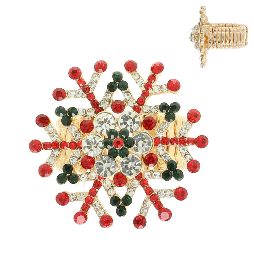 Christmas Crystal Rhinestone Snowflake Stretch Ring