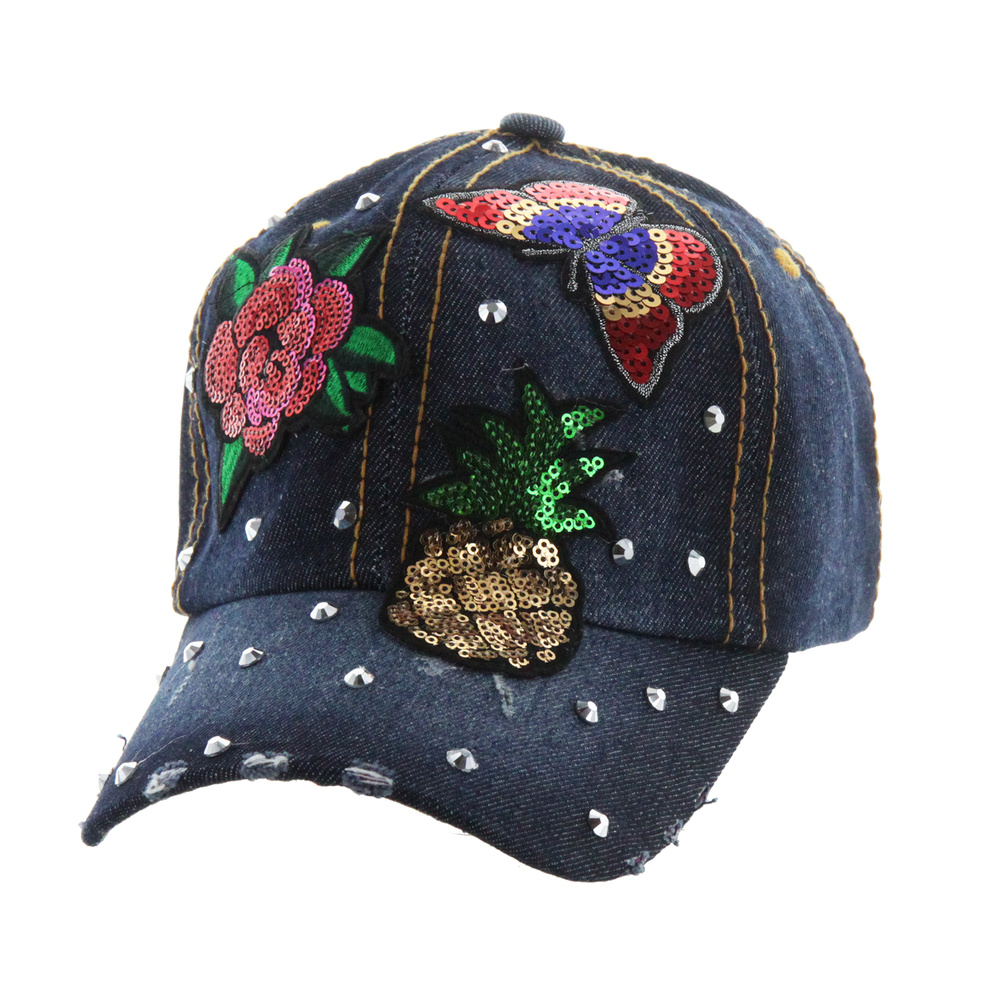 ROSE BUTTERFLY PINEAPPLE DENIM CAP