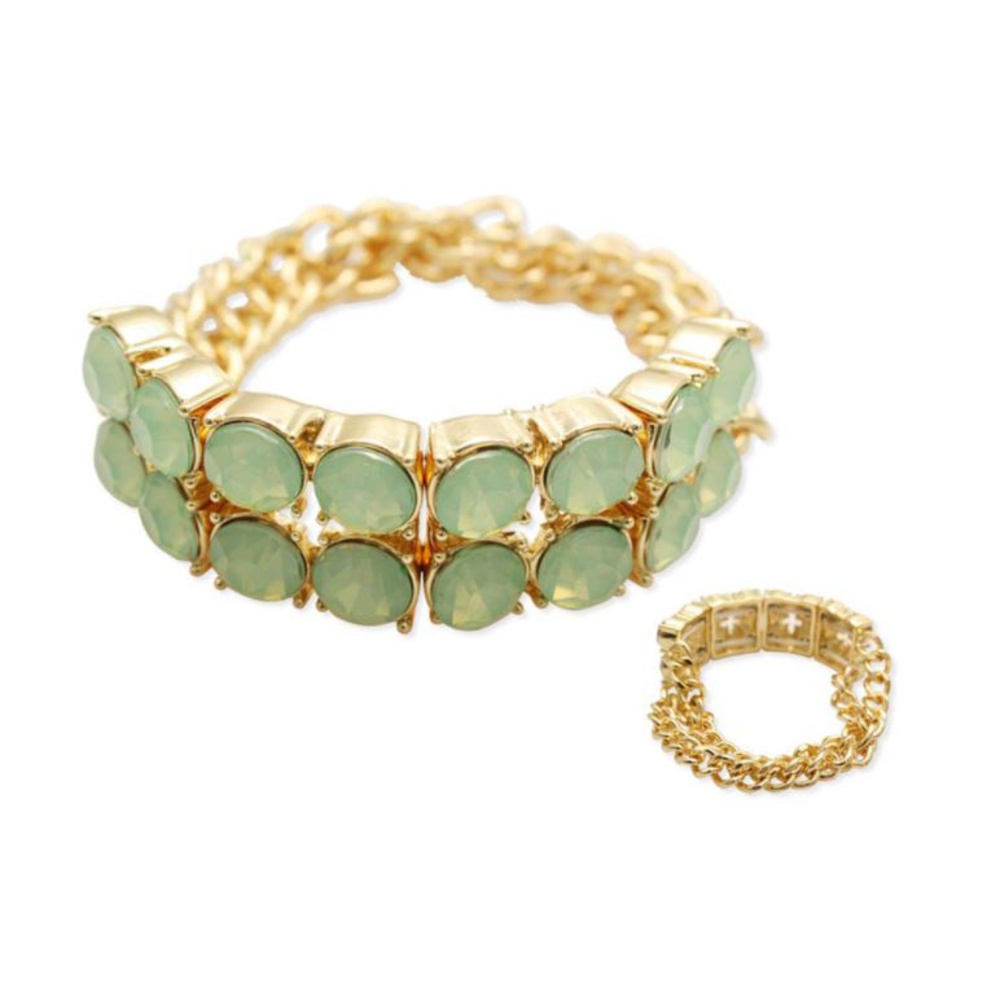 2 Line Stone And Chain Stretch Bracelet