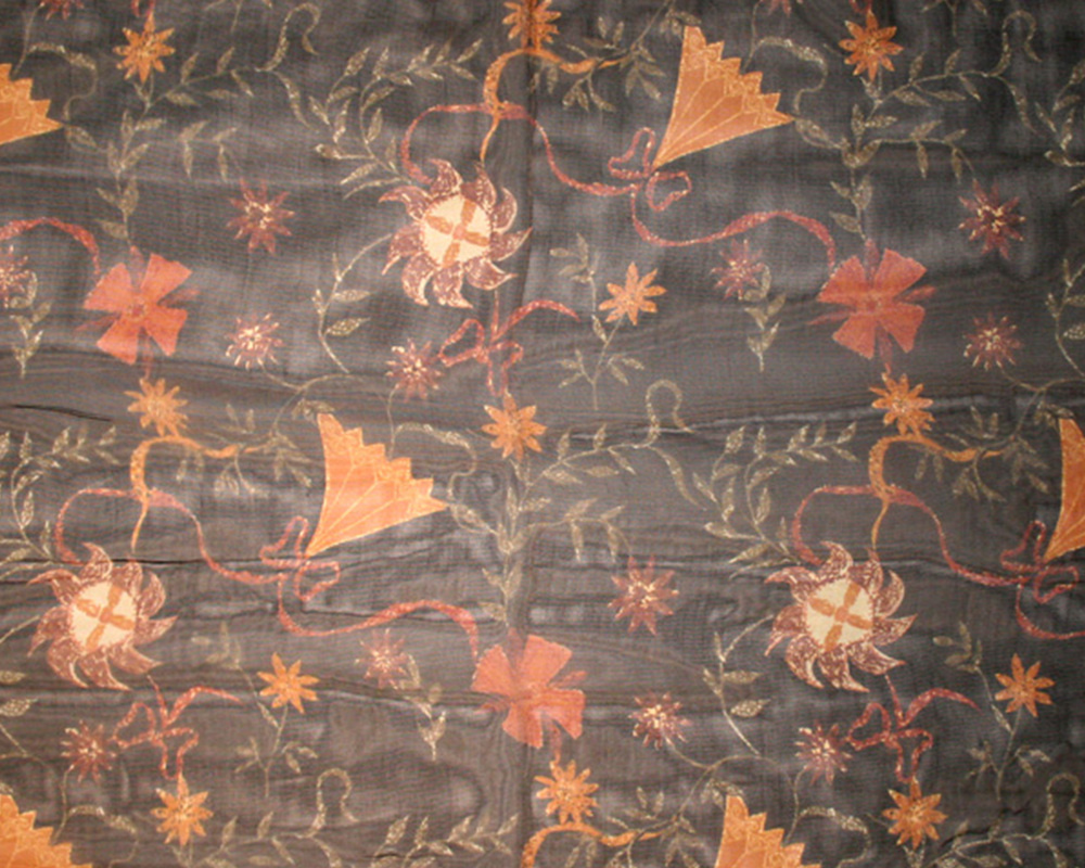 Chiffon Scarf With Flowers And Leaves Pattern Print Hg7332dz