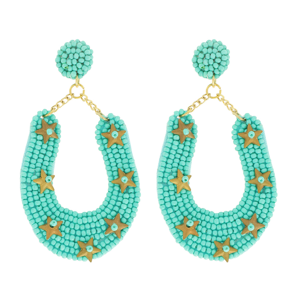 Western Style Lucky Horseshoe Hoof With Stars Seed Bead Dangle Earrings