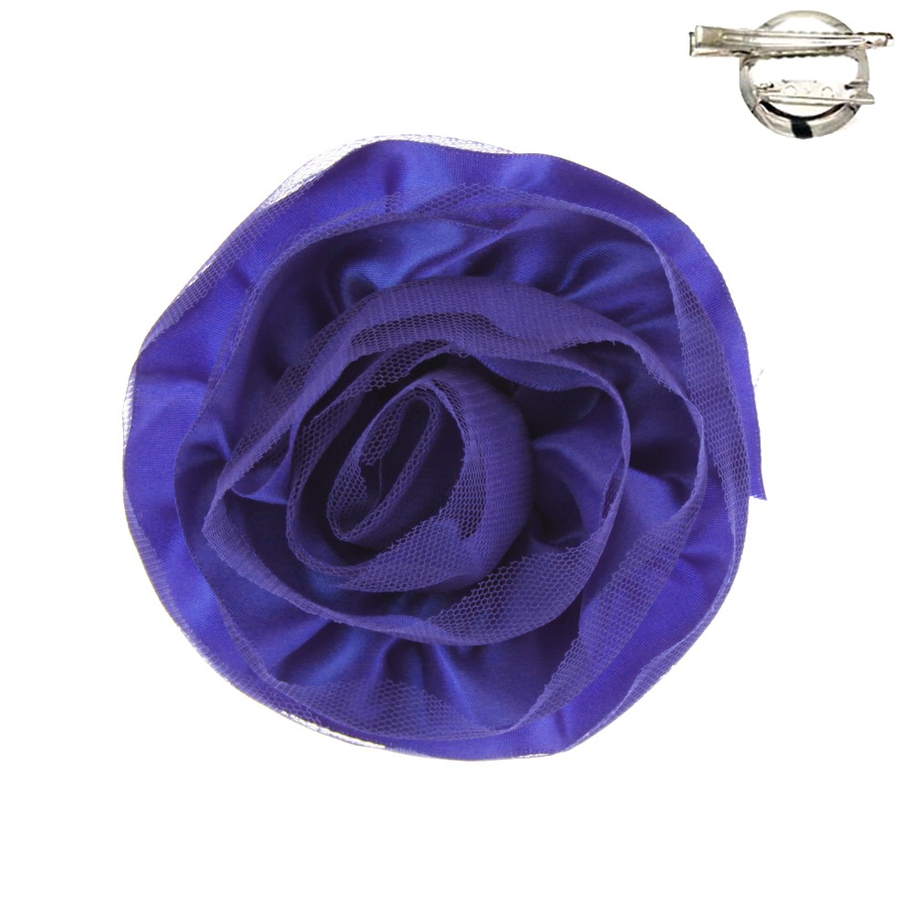 Satin And Mesh Rose Corsage Multi Function Hair Clip And Brooch Pin
