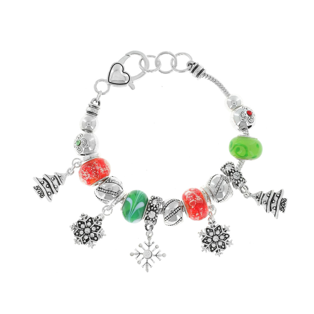 CHRISMAS TREE, SNOWFLAKE CHARM BEAD STRETCH BRACELET