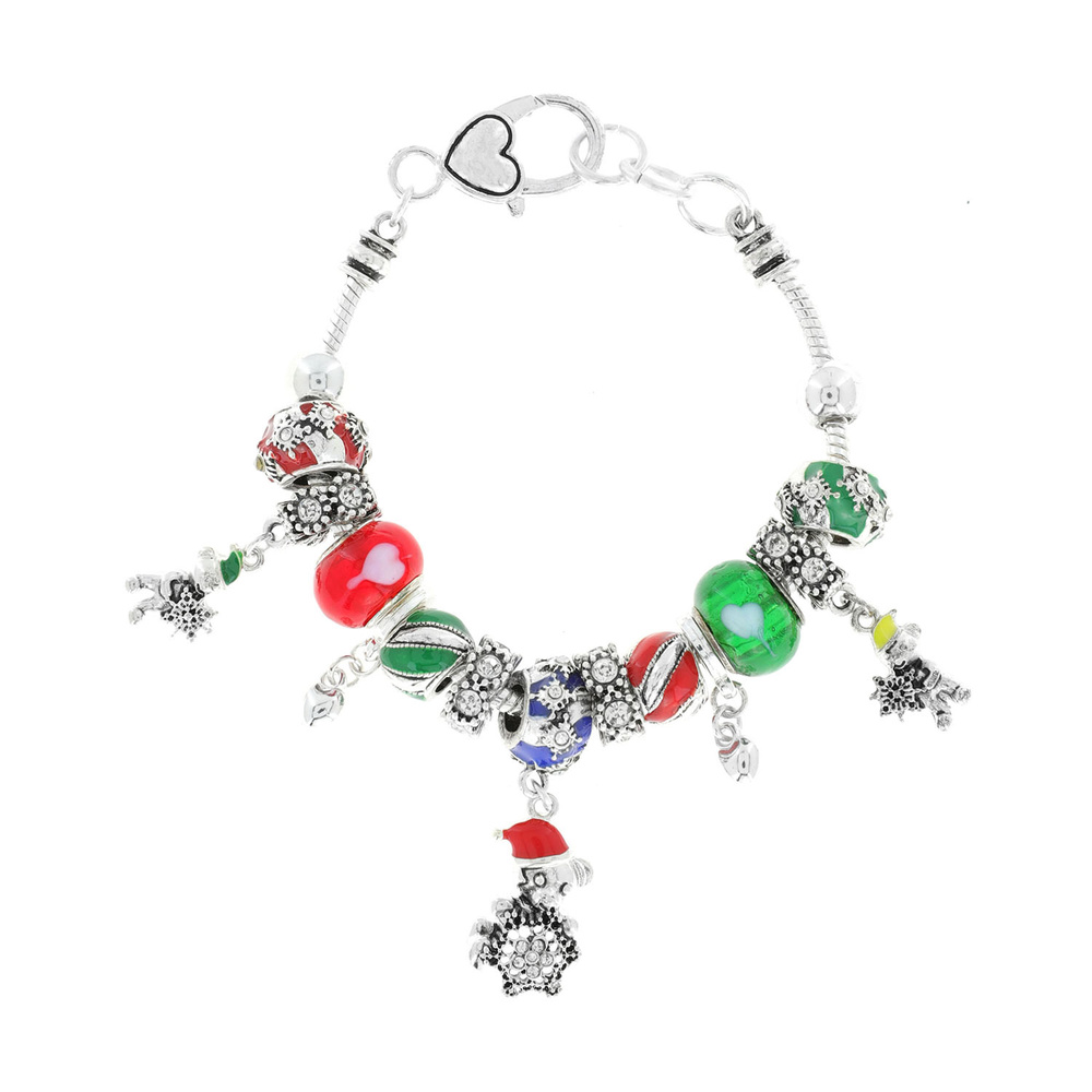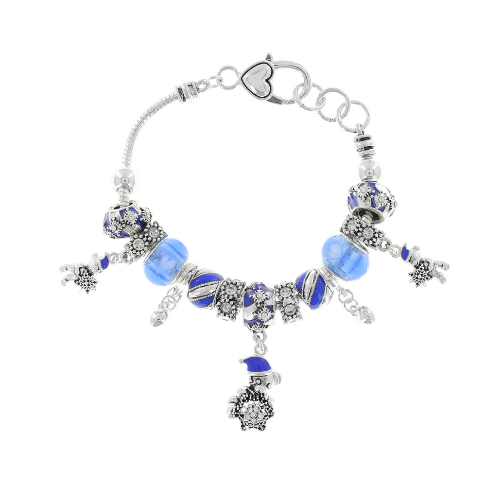 Chrismas Teddy Bear With Snowflake Charm Bead Stretch Bracelet