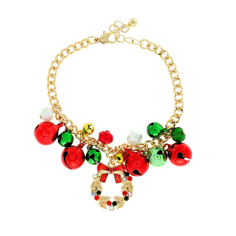 Christmas Wreath With Jingle Bell Lobster Clasp Bracelet