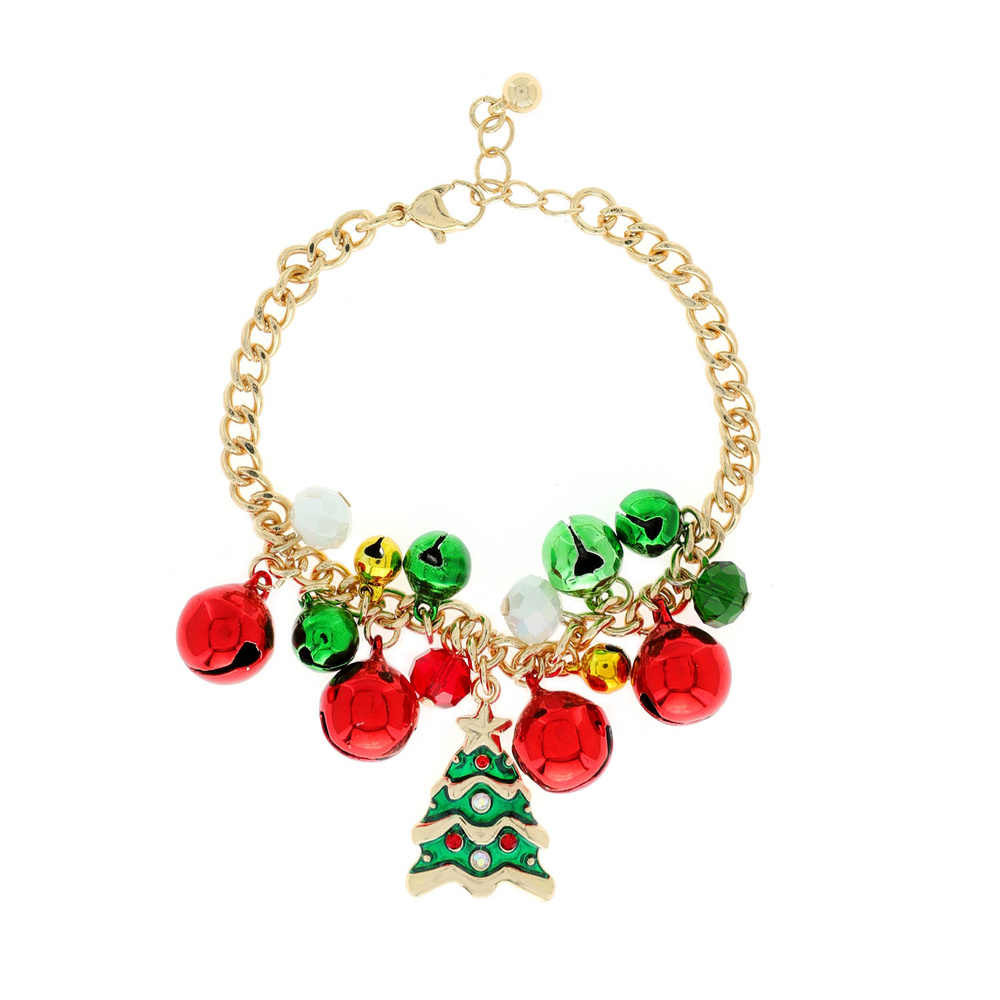 CHRISTMAS TREE WITH JINGLE BELL LOBSTER CLASP BRACELET