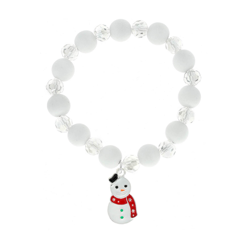 Christmas Santa Snowman Charm Rubber Ball And Bead Stretch Bracelet