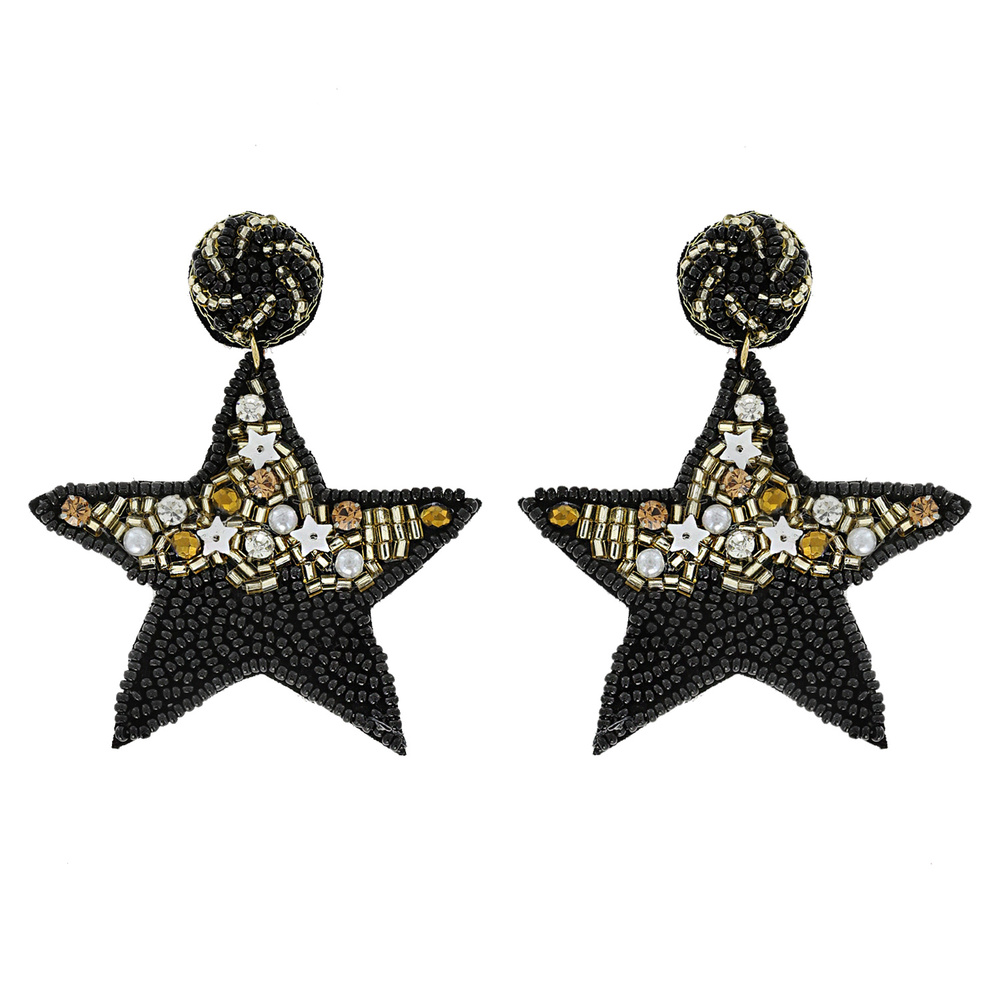 JEWELED STARFISH HANDMADE BEADED NOVELTY DANGLE AND DROP EARRINGS