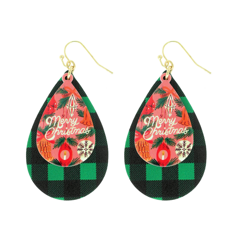 MERRY CHRISTMAS TEARDROP DANGLE EARRINGS