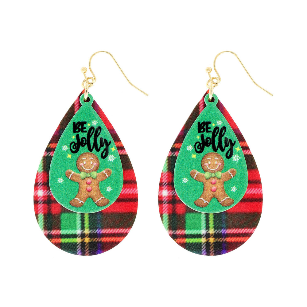 CHRISTMAS GINGERBREAD MAN TEARDROP DANGLE EARRINGS