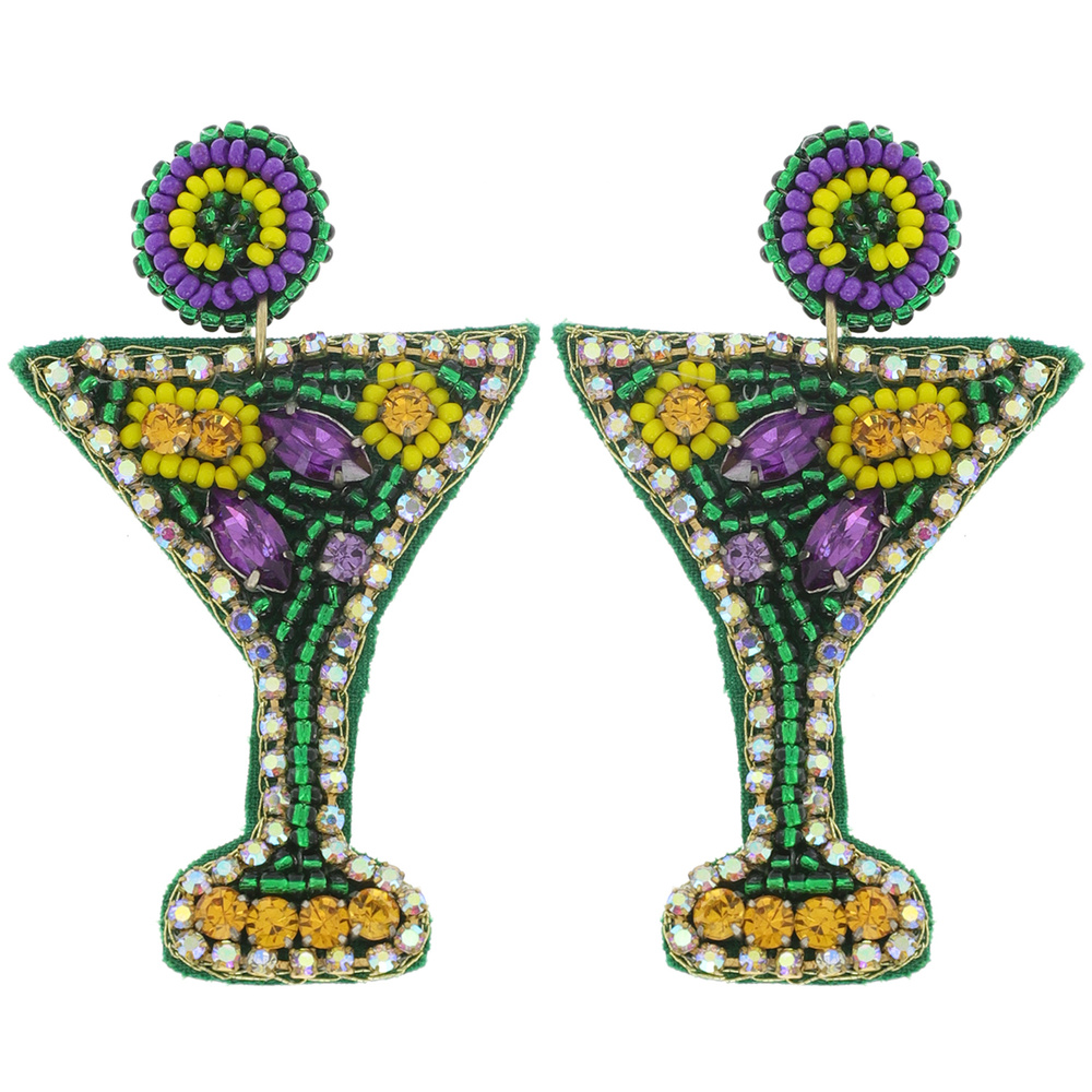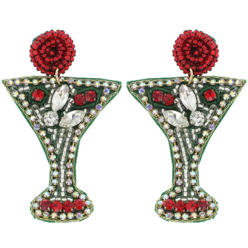 Handmade Beaded Embroidery Jeweled Christmas Cocktail Dangle And Drop Seed Bead Earrings