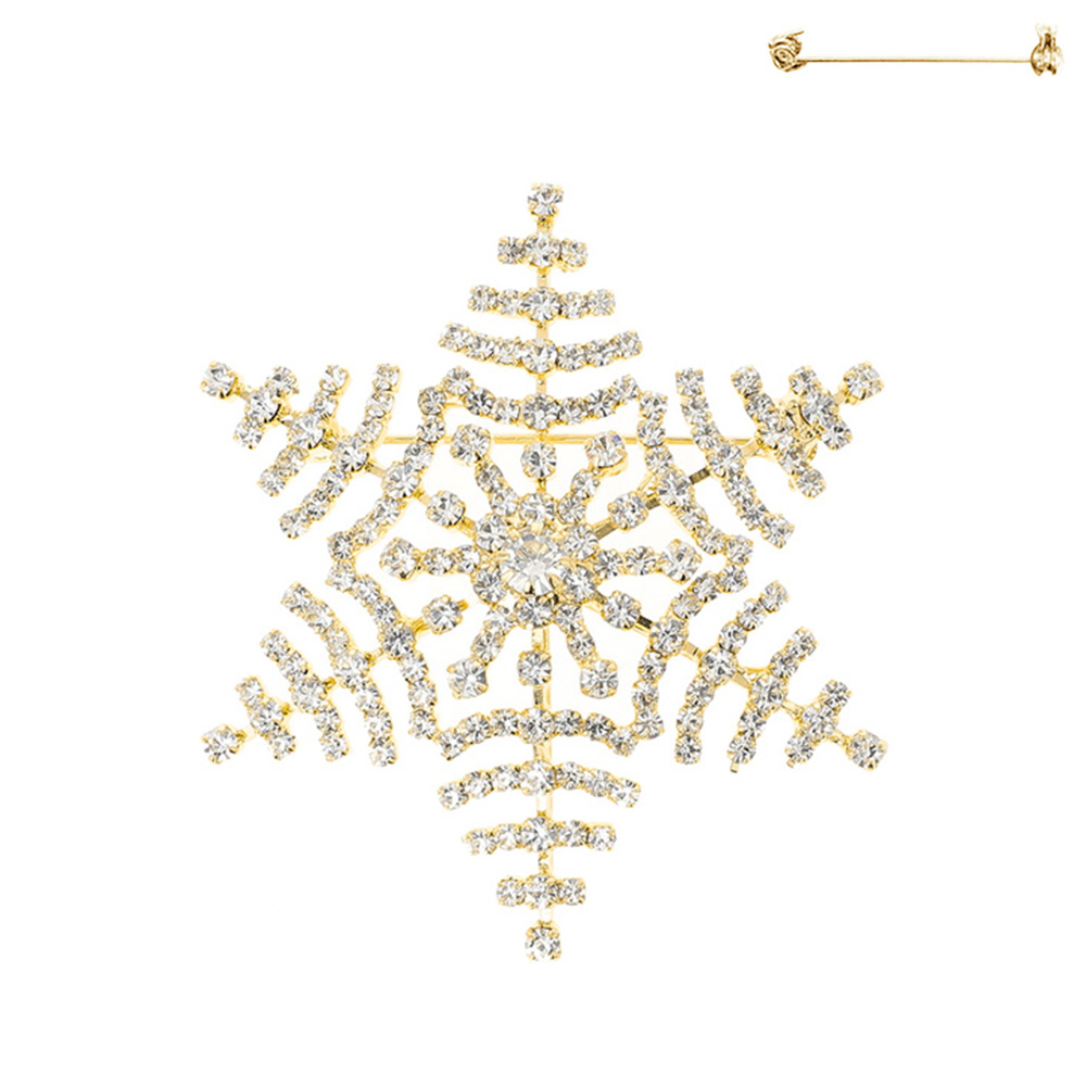 SNOWFLAKE BROOCH PIN IN SILVER TONE METAL WITH RHINESTONE ACCENTS