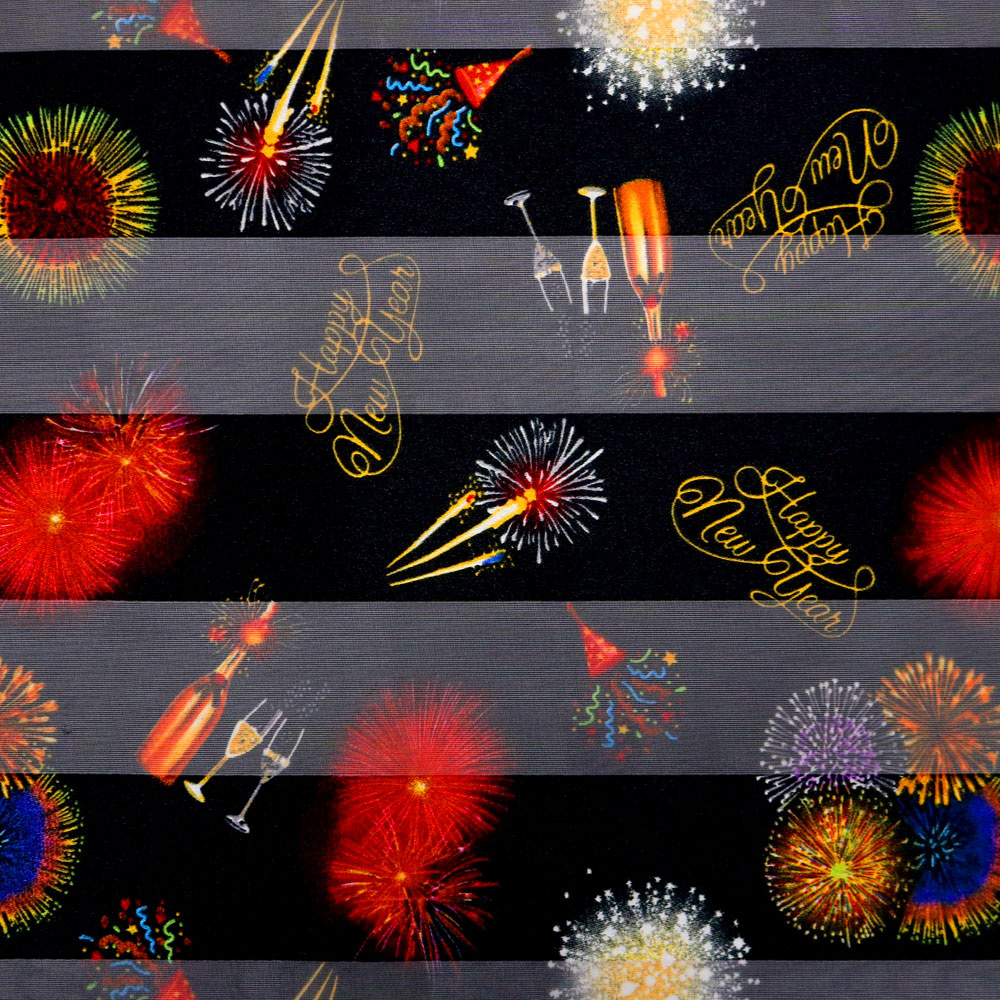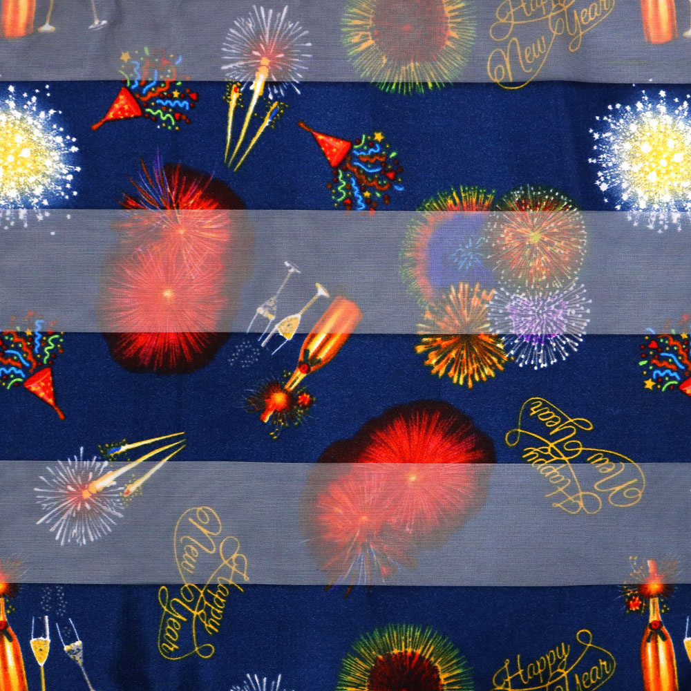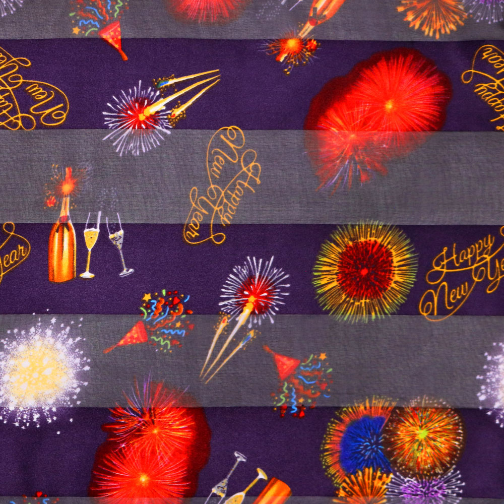 "HAPPY NEW YEARS" CHAMPAGNE FIREWORKS GRAPHIC PATTERN SEMI TRANSPARENT LONG SCARF